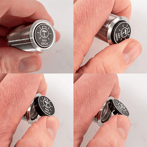 The 9060 Series 22mm Programmable Switch is built for marine systems that demand performance, flexibility, and durability. Engineered with corrosion resistant SS316 stainless steel and sealed to an IP69K waterproof rating made possible by Bluewater’s proprietary Deutsch style connectors, this waterproof switch is ready for harsh environments with moisture, salt, and shock.