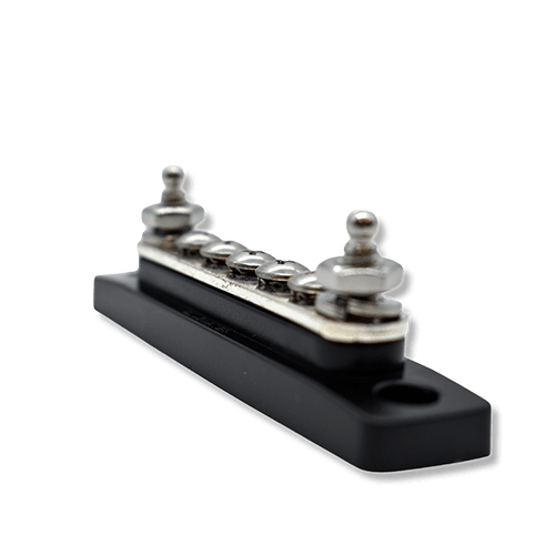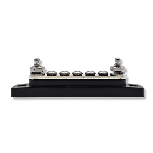 This compact 5-terminal busbar supports up to 100 amps, providing clean and reliable power distribution for smaller systems. It’s ideal for organizing circuits in tight marine or automotive panels where space is limited.