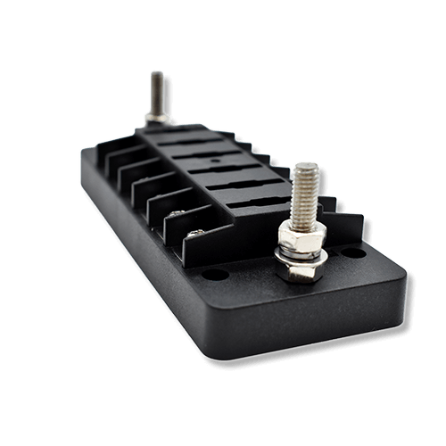 Compatible with ATO or ATC style breakers, the block features M6 threaded studs for main power input and M4 studs for individual outputs, ensuring solid, corrosion-resistant connections. Built from stainless steel, nickel-plated copper, and polycarbonate, it’s designed to withstand harsh conditions while keeping your system safe and organized.
