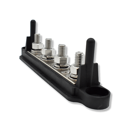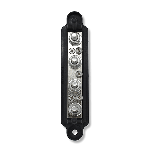 Designed to simplify negative distribution, this 4-gang terminal block provides a central grounding point with a shared input stud. This negative bus bar is an excellent choice for managing battery or chassis returns in clean, reliable installations.