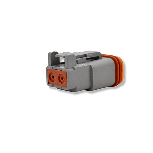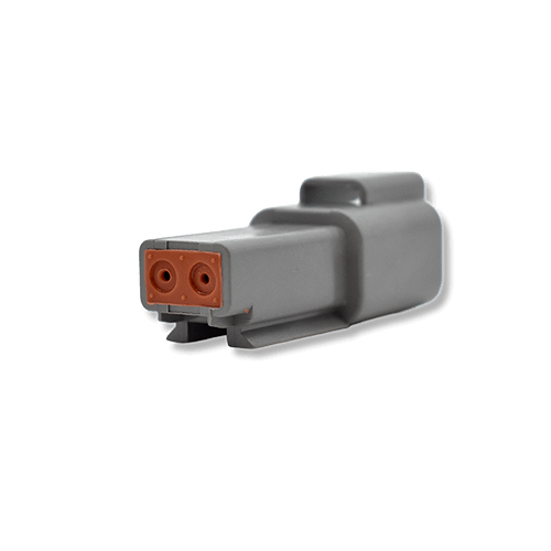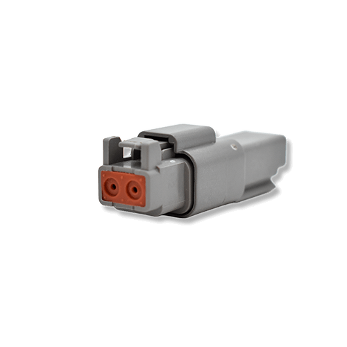 The DTO4-2P and DTO6-2S connectors are part of the DT series and form a complete 2-cavity connection. These Deutsch-compatible connectors are fully interchangeable with matching Deutsch parts.