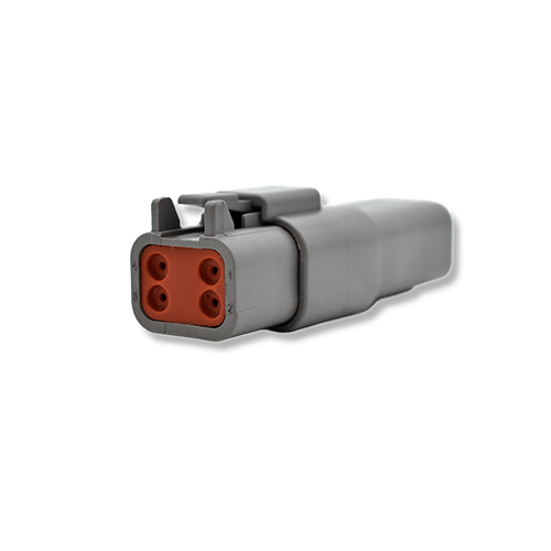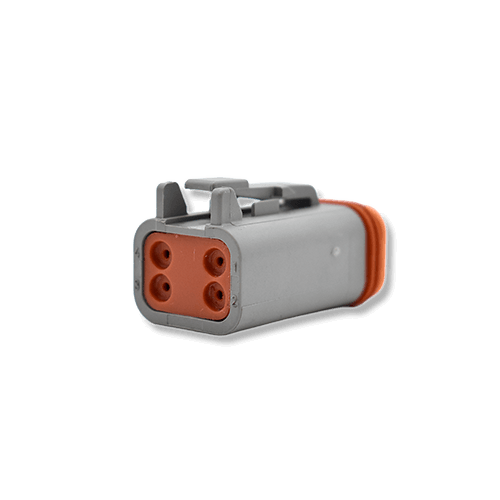 The DTO4-4P and DTO6-4S connectors are part of the DT series and form a complete 4-cavity connection. These Deutsch-compatible connectors are fully interchangeable with matching Deutsch parts.