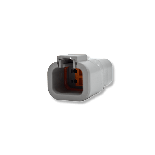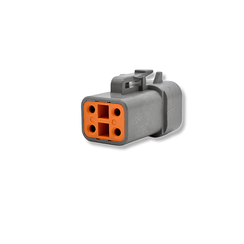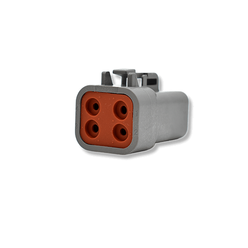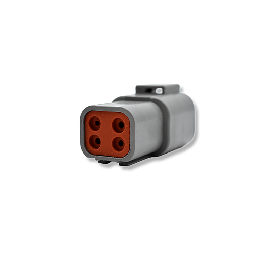 The DTPO4-4P and DTPO6-4S connectors are part of the DTP series and form a complete 4-cavity connection. These Deutsch-compatible connectors are fully interchangeable with matching Deutsch parts.
