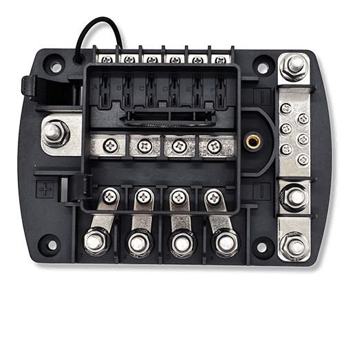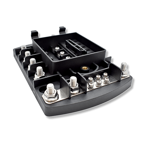The marine Safety Hub is a smart, space-saving solution that consolidates high-amperage fusing into a single, organized unit. Designed for complex marine and vehicle power systems, it provides integrated circuit protection while maintaining clean and secure busbar connections.