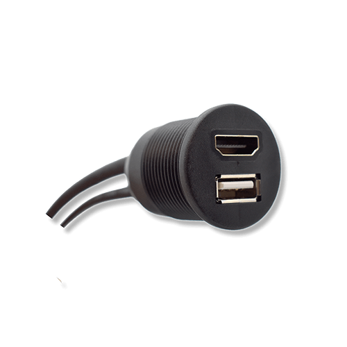 Designed for multimedia connectivity, this USB/HDMI Mount with Cable combines a USB port and an HDMI port with pre-attached cables. Perfect for display or audio systems, it allows easy access to inputs while maintaining a sealed, finished look in any marine or vehicle environment. The USB/HDMI Mount with Cable ensures secure, reliable connections, prevents cable strain, and supports clean panel integration.